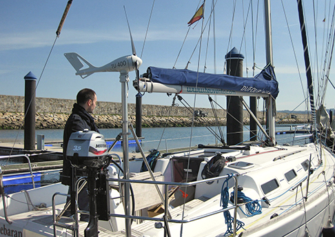 Os aerogeradores TU400 trabalham a 12 ou 24V, aportando potências nominais entre 100 e 600W. Podendo ser utilizados em conjunto com módulos fotovoltaicos, evitam ter que ir ao porto para recarregar os equipamentos de acumulação.